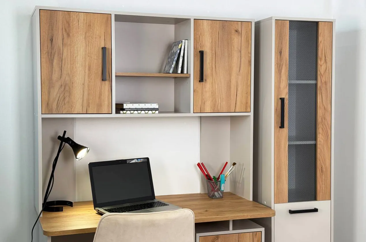 Надстройка Лайт-2 является универсальным дополнением к компьютерным столам. Она оборудована нишами для важных мелочей и шкафами для канцелярии, что делает ее не только практичной, но и стильной.