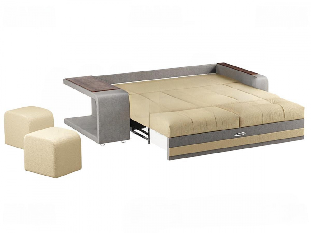 Прямой диван "Дуэт-Б" имеет формованные подушки с утяжкой. Дополнительная опора защищает спинку дивана от провисания. В одной из боковин разместились два удобных пуфа, создавая тем самым дополнительные сидячие места.