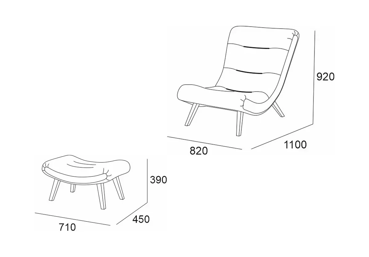 Габаритные размеры кресло: 820х1100х920 (мм).