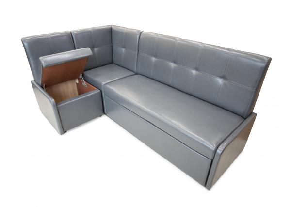 Кухонный угол ,за счет выкатного элемента и мех-ма трансформации –дельфин, имеет спальное место. Сидение малого дивана откидное, установлено на микролифты.Сам кухонный угол универсальный,за счёт съёмных подлокотников собирается как на правую,так и на левую стороны.