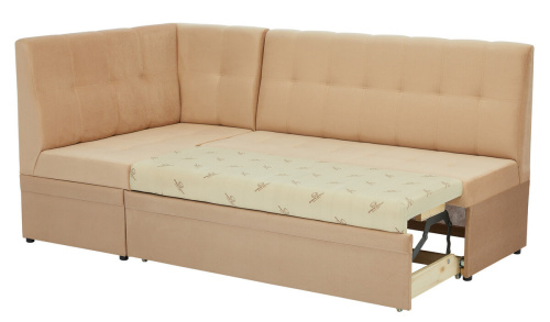 Кухонный угол, за счет выкатного элемента и мех-ма трансформации – «Дельфин» на металлокаркасе, имеет спальное место. Оттоманка дивана откидная и имеет короб для хранения.