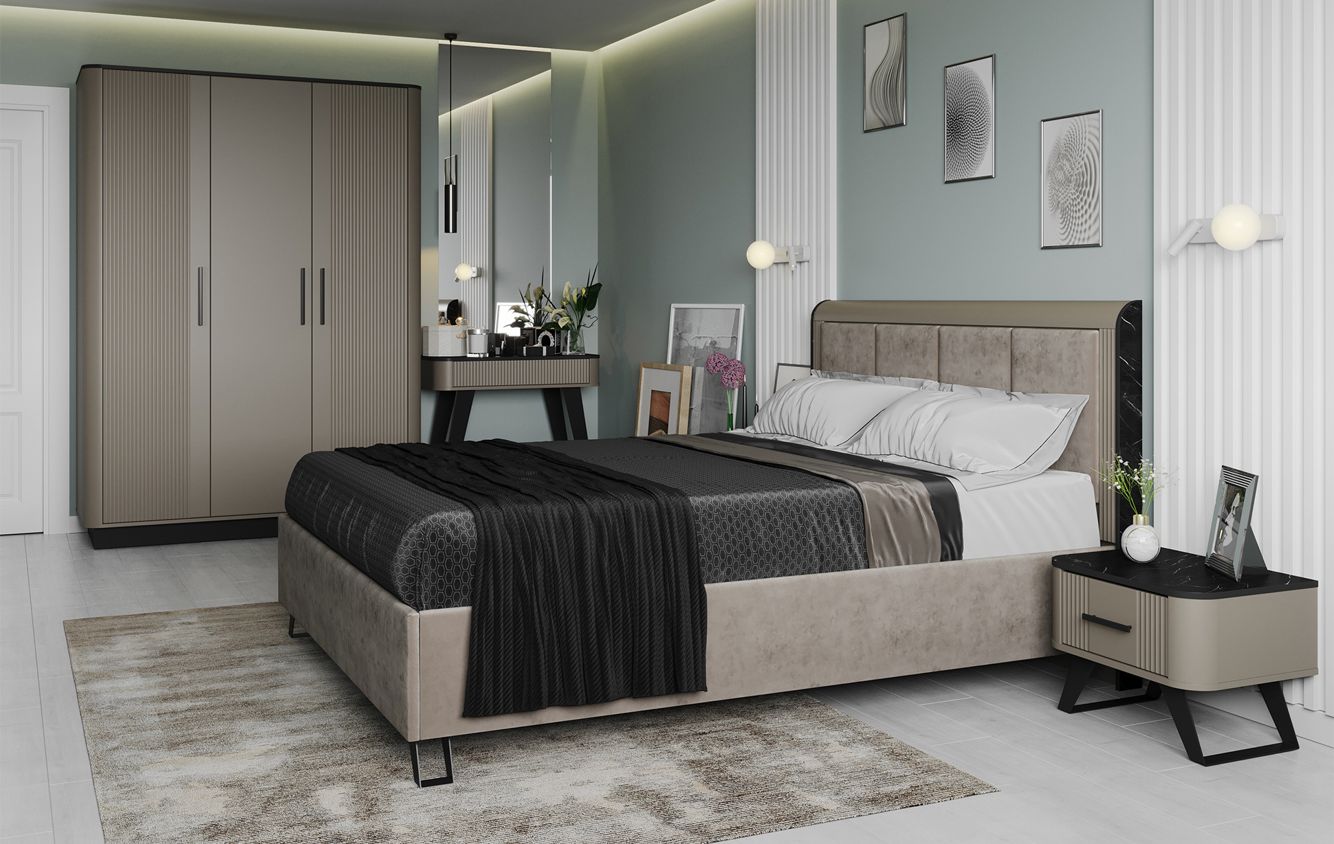 Спальный гарнитур Фиделия совмещает благородную привлекательную эстетику с практичностью и хорошим функционалом. Продуманный дизайн уместно дополнит созданный интерьер и органично впишется в любое помещение.