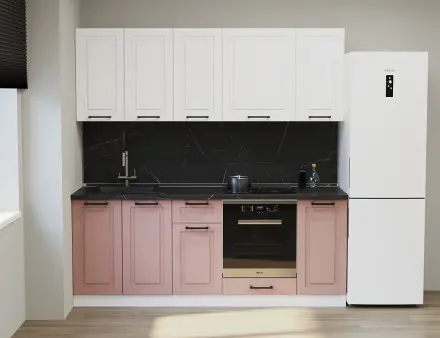 Аликанте 19: Цвет фасада: Шарли Pink, Шарли белый, корпус Серый, столешница 28мм: Каспий черное золото