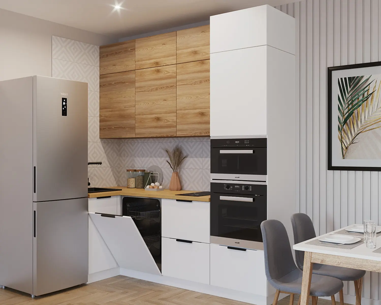 Подчеркнуть эстетику минимализма в интерьере любой кухни помогут материалы: этот стиль дизайна позволяет использовать как натуральное дерево и камень, так и пластик, стекло, металл. Так как украшений в минималистическом стиле почти нет, отделка и кухонная мебель должны выглядеть стильными.