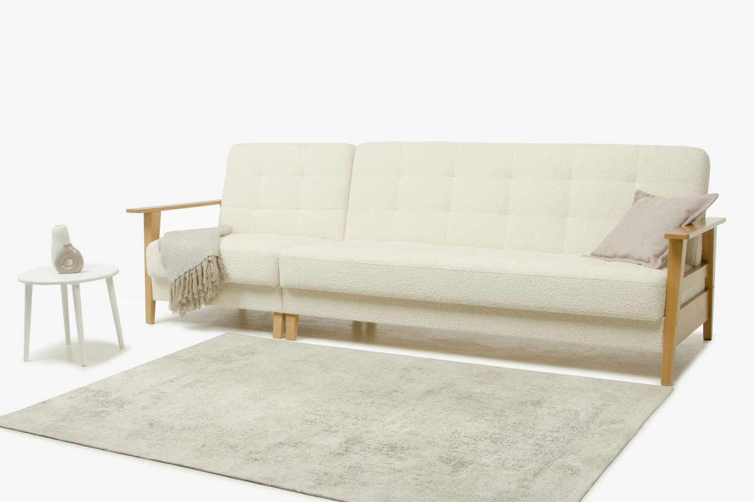 Диван «Скандинавия 3+1 Массив» - классический представитель скандинавского стиля. Его лаконичный дизайн с деревянными подлокотниками из бука, удобными валиками и прямоугольной стежкой удачно дополнит любой интерьер. На таком диване приятно принимать гостей, удобно сидеть и комфортно спать.