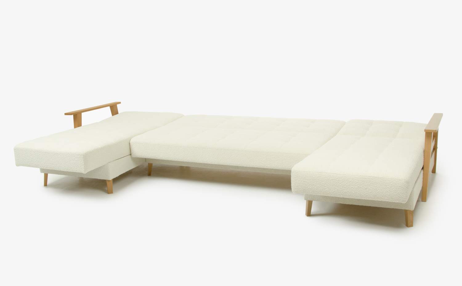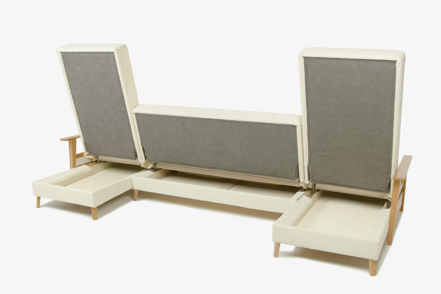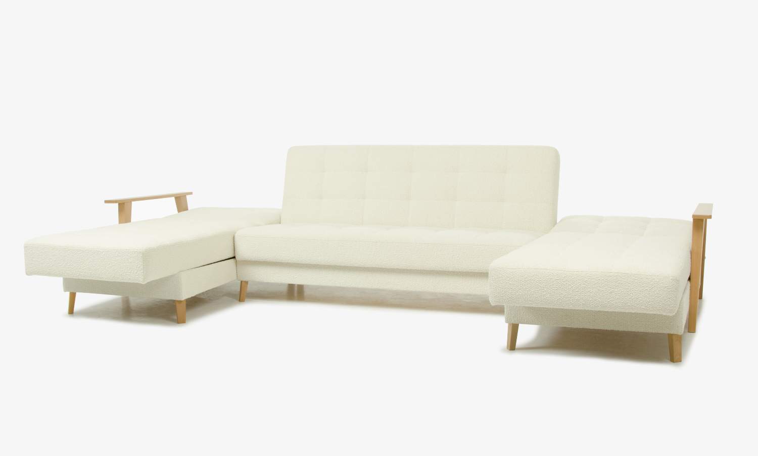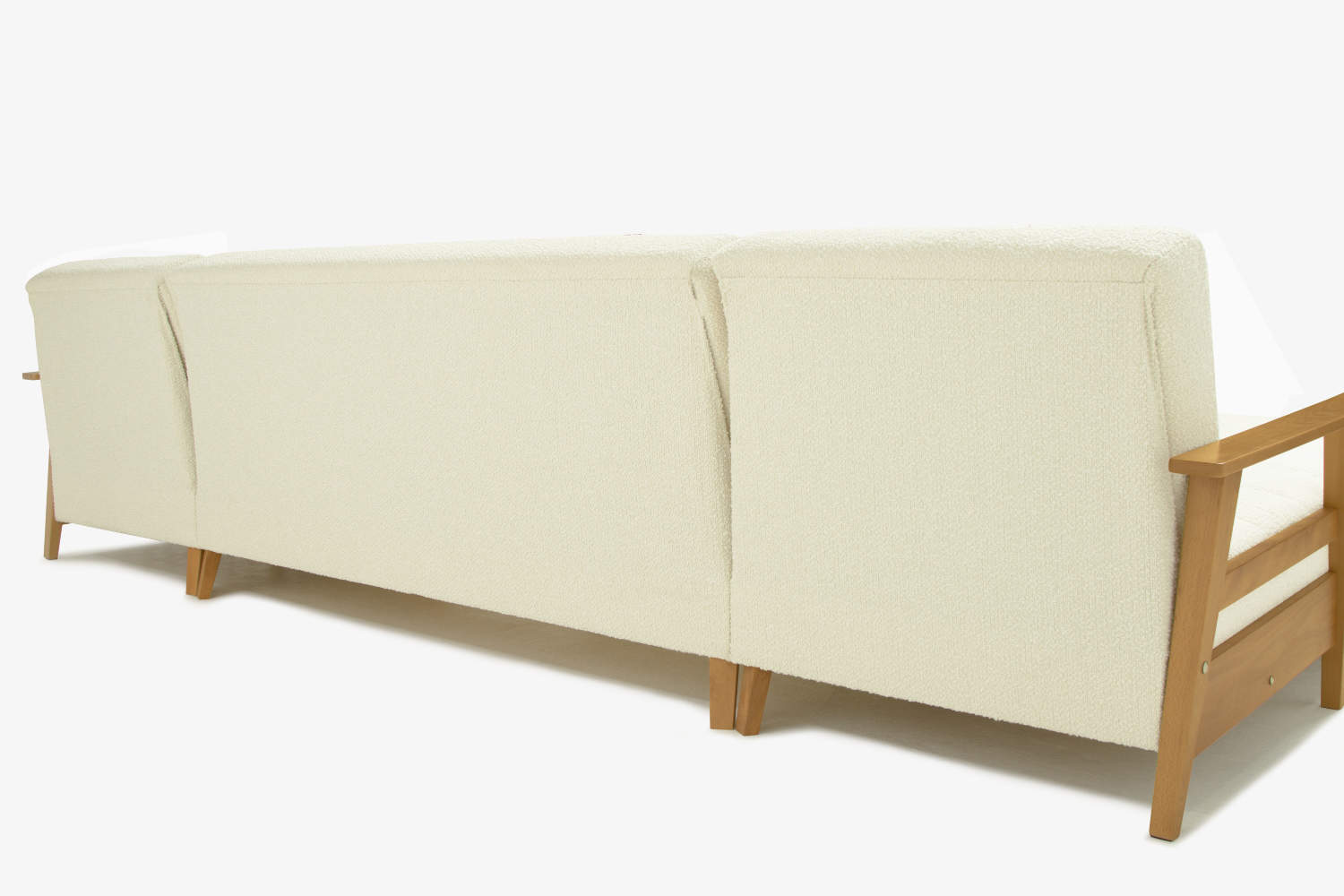 Диван «Скандинавия От+3+От Массив» - классический представитель скандинавского стиля. Его лаконичный дизайн с деревянными подлокотниками из бука, удобными валиками и прямоугольной стежкой удачно дополнит любой интерьер. На таком диване приятно принимать гостей, удобно сидеть и комфортно спать.