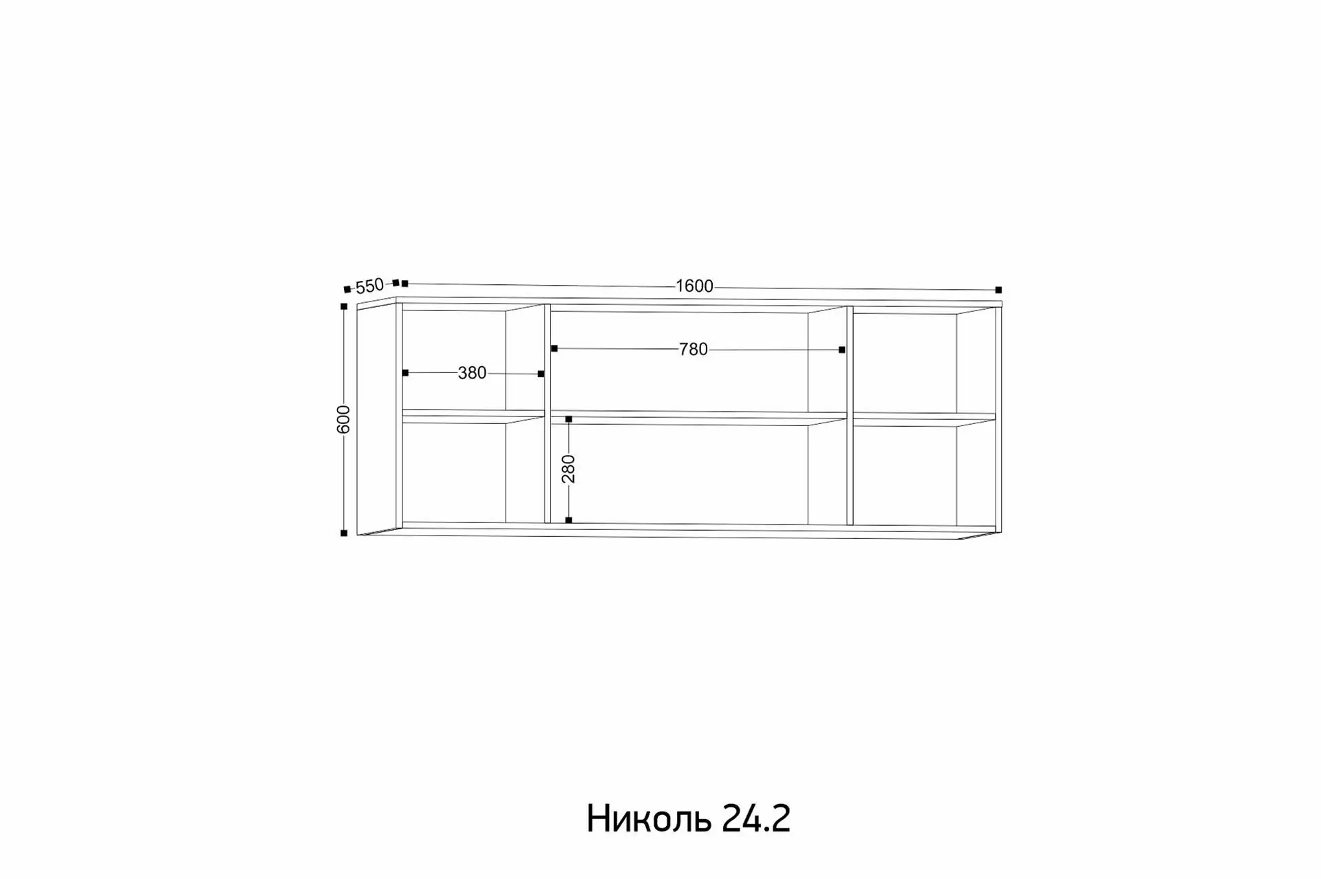 Ширина: 1600 мм | Глубина: 550 мм | Высота: 600 мм