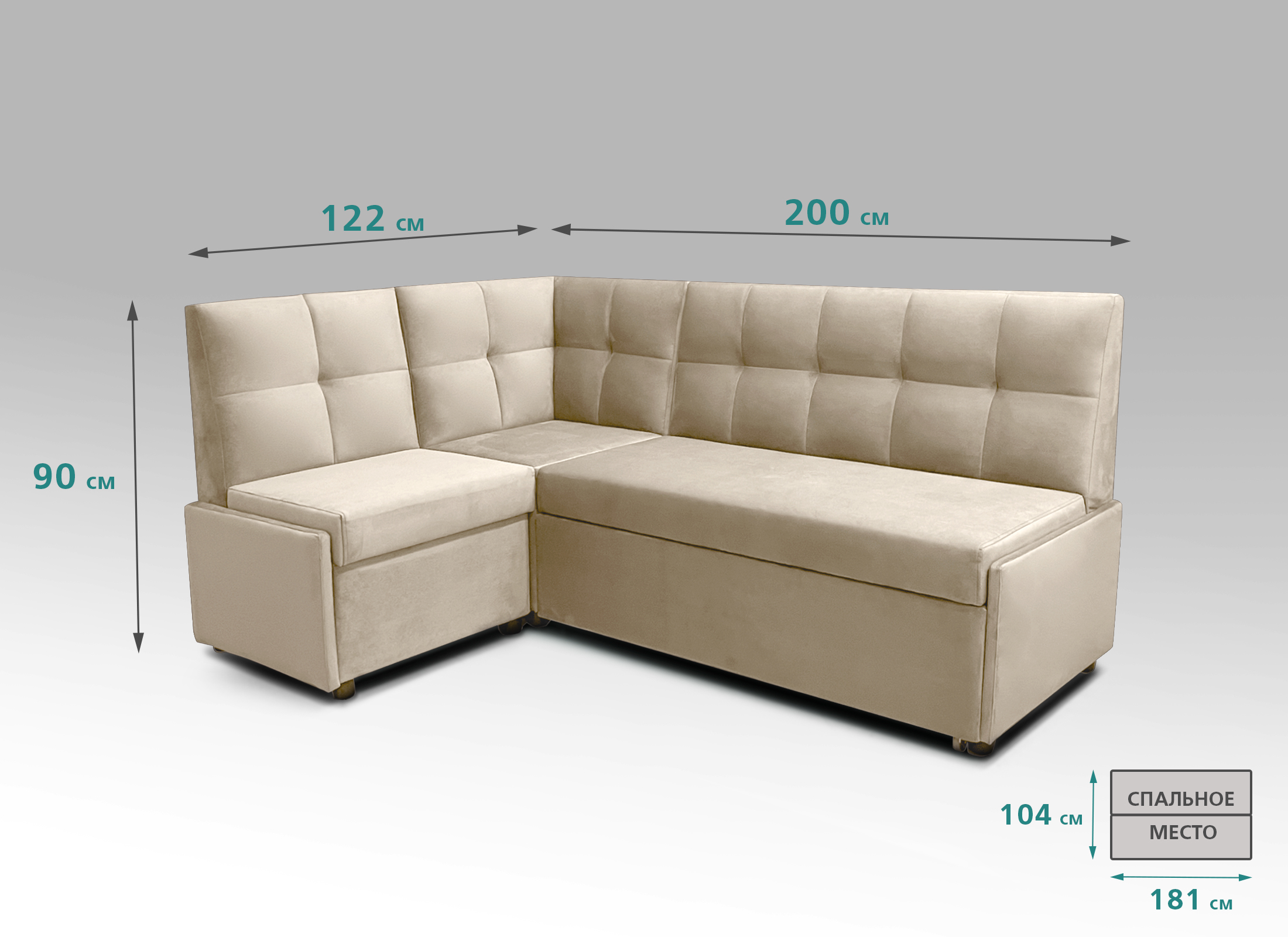 Описание: Модульная мебель предназначена для кухонных помещений. Стандартная комплектация является универсальной и может собираться в домашних условиях, на любую сторону, без применения инструментов. Ящик для хранения вещей. Раскладывается в спальное место, где обивка выполнена из основной ткани. Полка ЛДСП.
