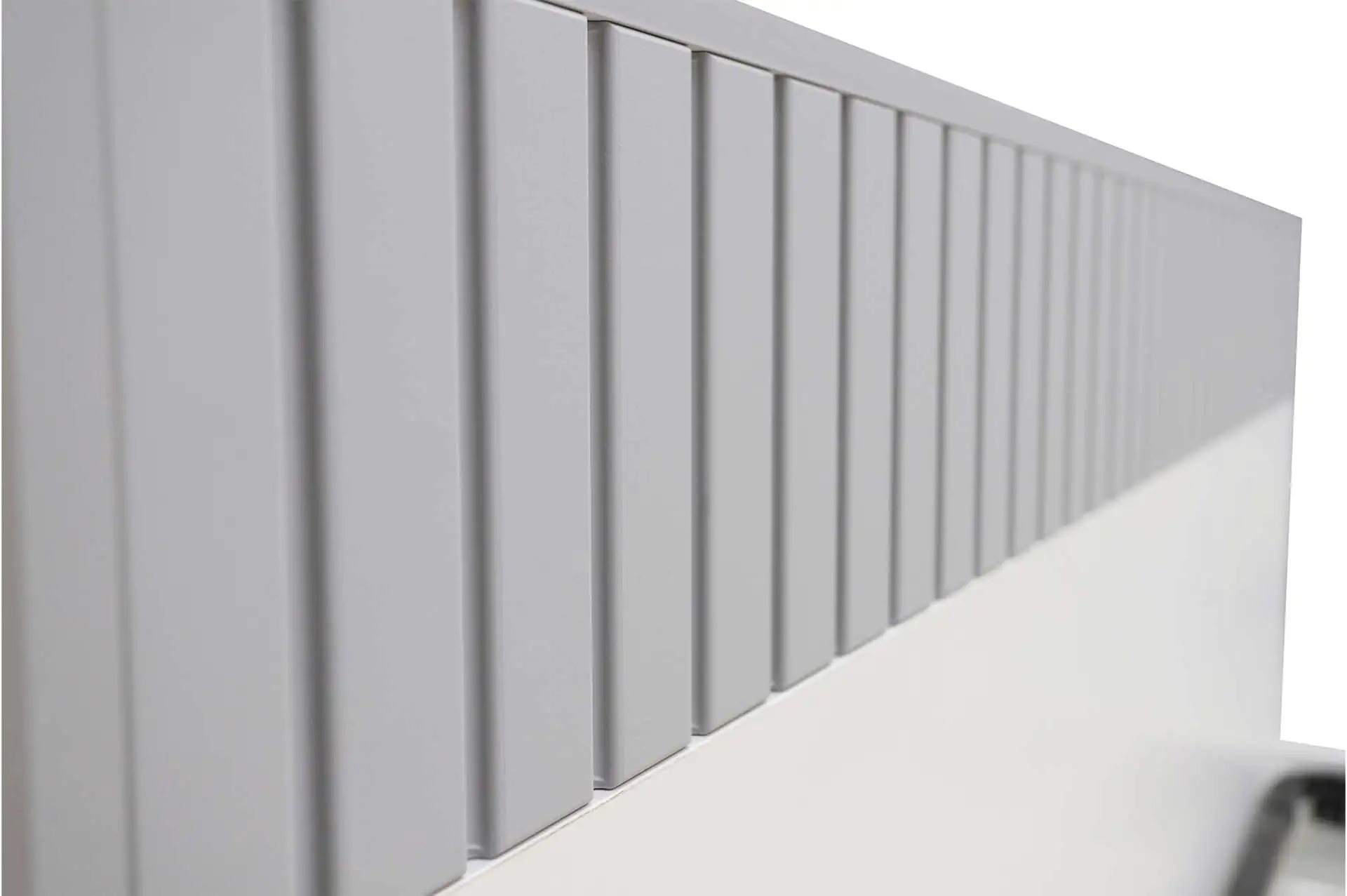 Уникальная парящая кровать в трендовом серо-белом сочетании. Выглядит легко и стильно, особую изюминку придает фрезеровка на изголовье. Кровать не только эффектно выглядит, но и благодаря крепкой конструкции устойчива и надежна.
