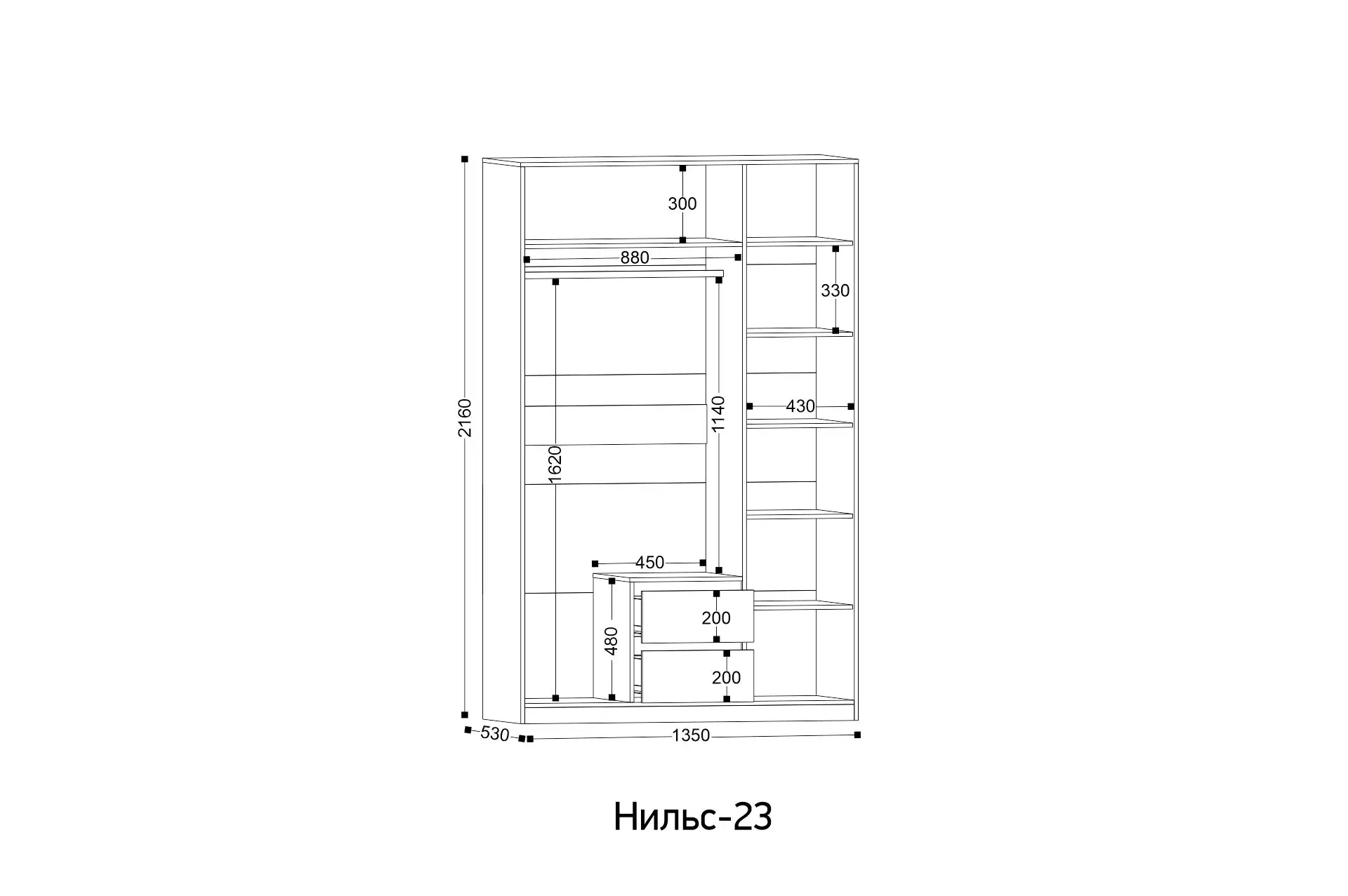 Ширина: 1350 мм | Глубина: 530 мм | Высота: 2160 мм