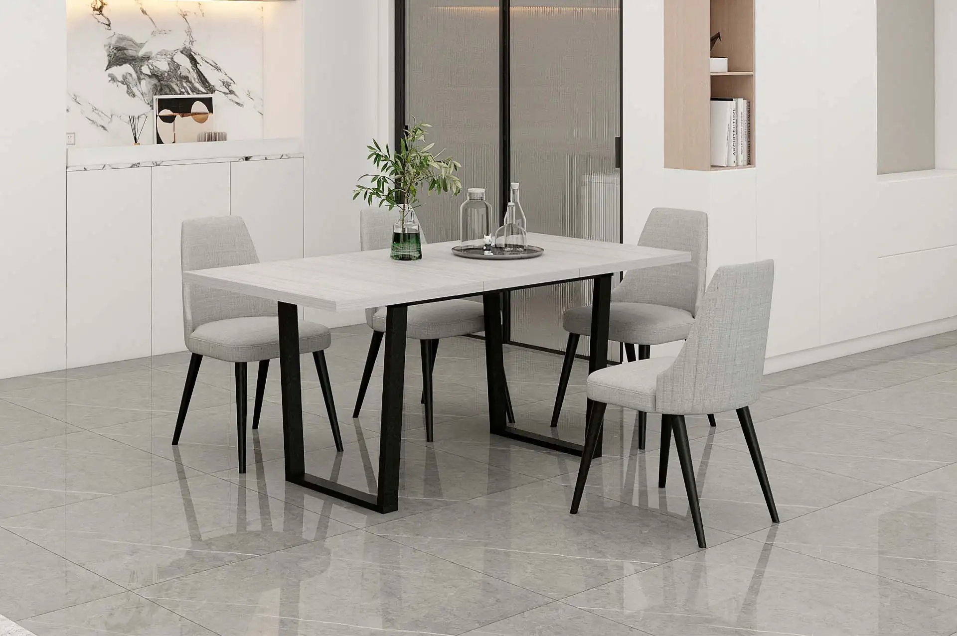 Брутальный кухонный стол выполнен из прочного металла и имеет элегантную столешницу. У вас есть возможность выбрать прямые или трапециевидные опоры в двух цветах, чтобы придать столу еще.