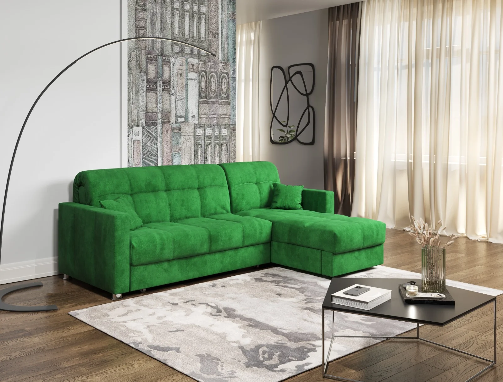 Большой и мягкий, он создаст уютную атмосферу в вашем доме и станет местом отдыха для всей семьи. Этот современный диван-кровать может использоваться как спальный диван и двуспальная кровать, что делает его идеальным для гостей или для небольших квартир.
