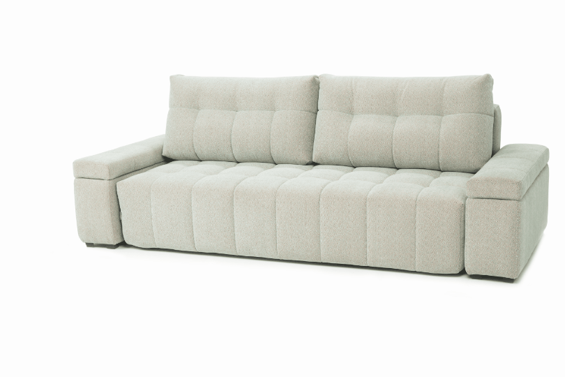 В основании дивана металлический каркас HEAVY METAL, с дополнительной гарантией 67 месяцев. Вы легко сможете разложить диван с помощью механизма «еврокнижка» со стальными направляющими AURORA STEEL.