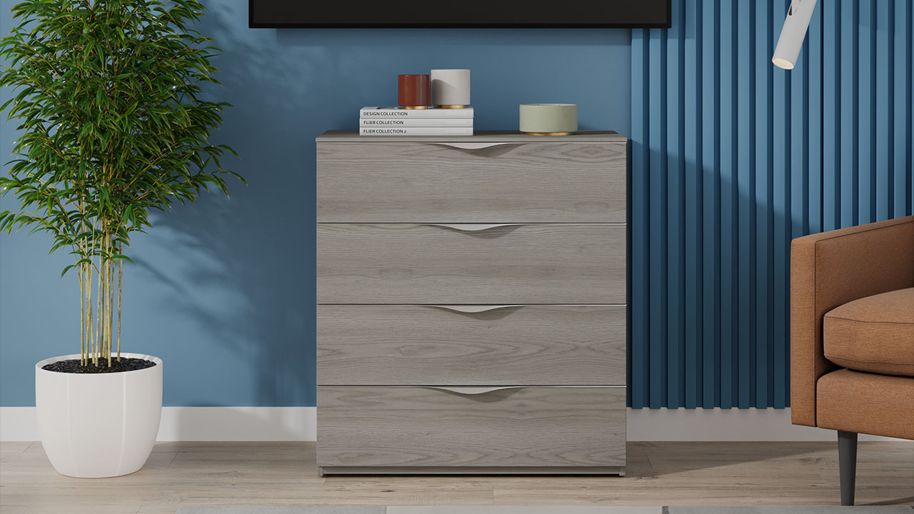 В коллекции представлено несколько вариантов фасадов (ДСП и МДФ в эмали), которые можно использовать как в едином стиле, так и комбинировать между собой. Первый вариант: сборная конструкция из ЛДСП «Хадсон» - верхняя и нижняя деталь имеет разное направление текстур. Второй вариант: верхняя часть фасада ЛДСП «Хадсон», нижняя часть фасада выполнена из МДФ в сером глянцевом покрытии эмалью «Стоун».